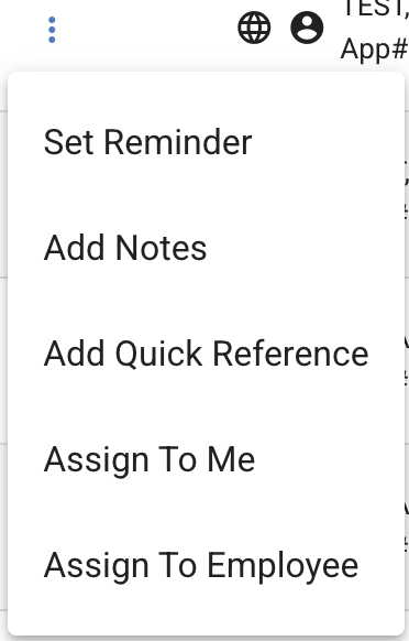 To view or attach manual notes to an application, click the ellipsis from the Dashboard page or click the hamburger icon on the application page.